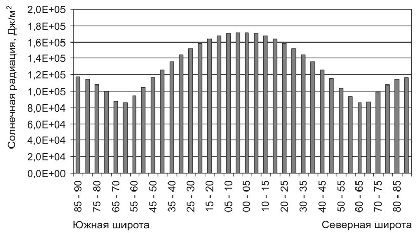 приходящей солнечной радиации, Дж/м